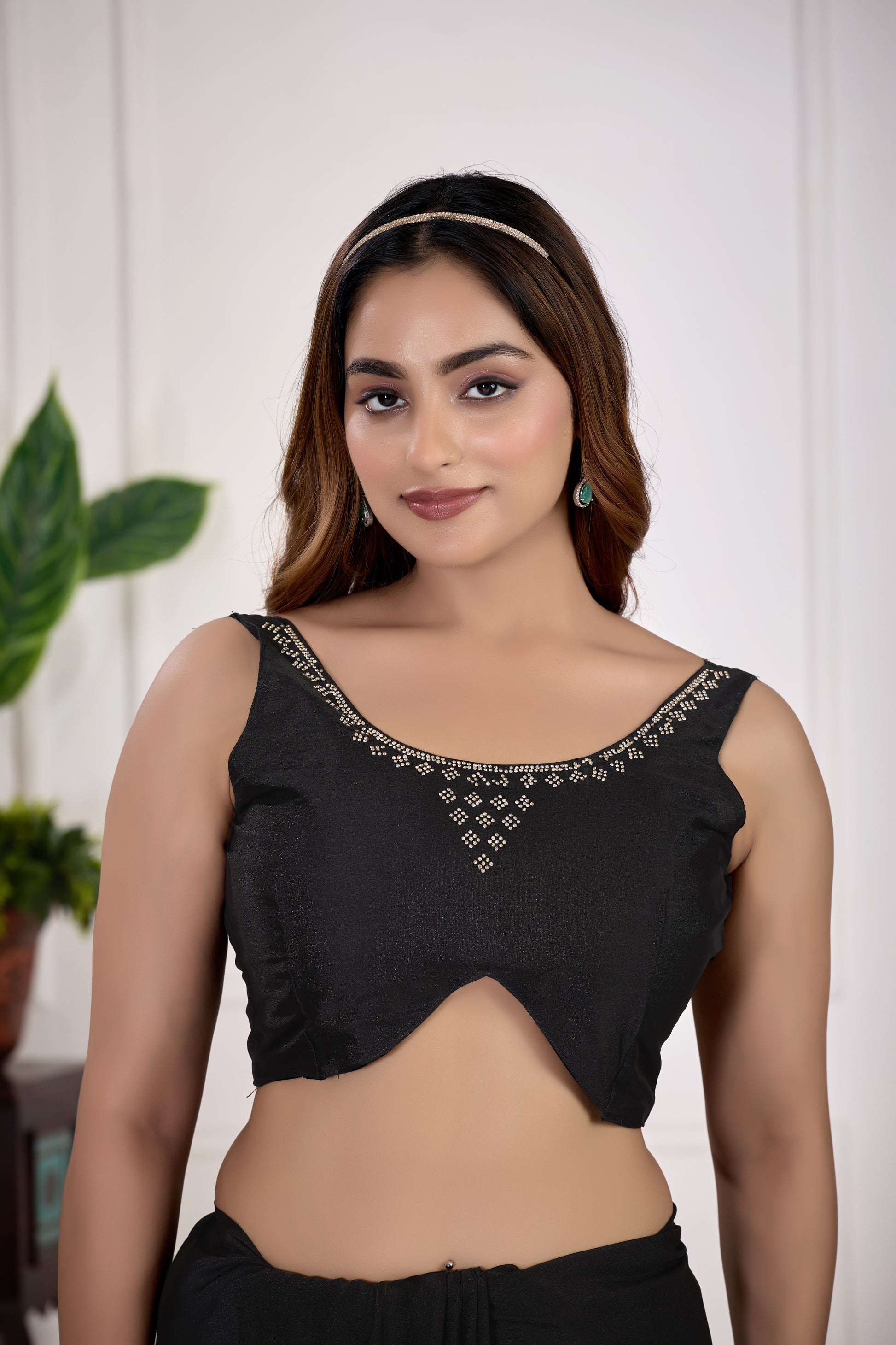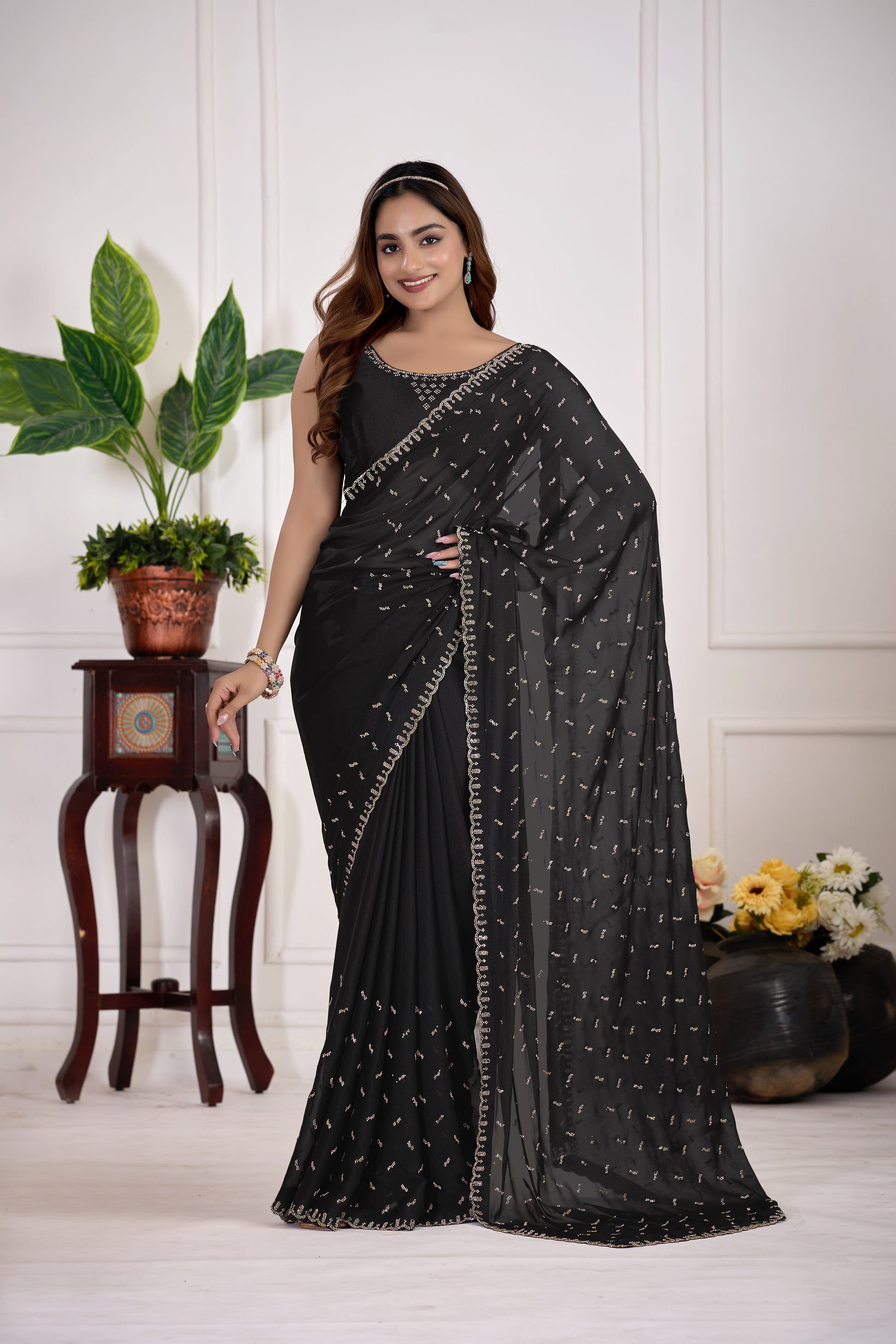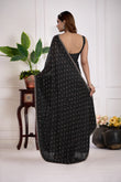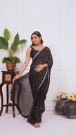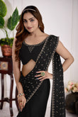 Black Satin Silk Saree With All Over Butty Work (Jarkan Stone) Premium Party & Wedding Wear Saree