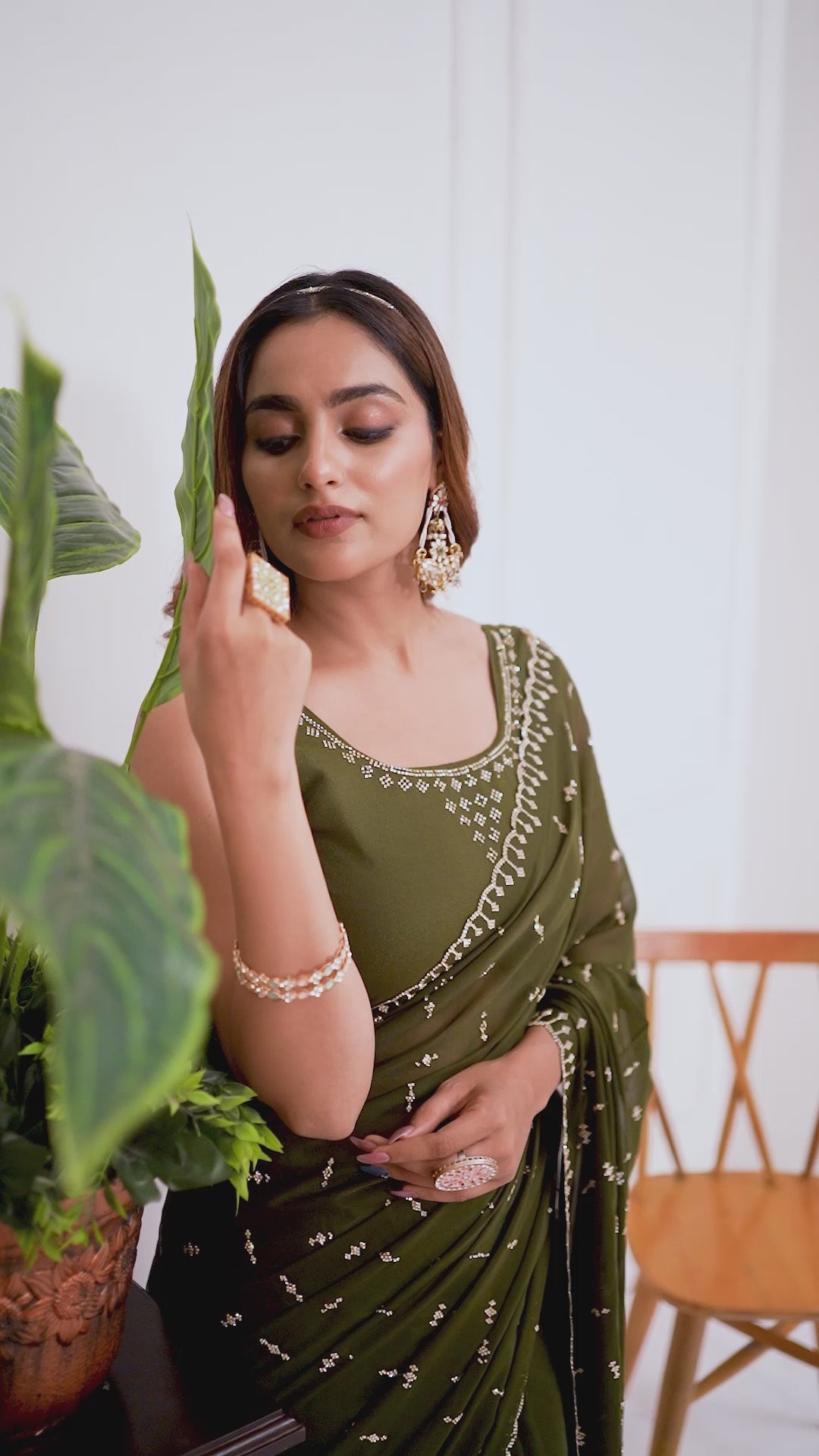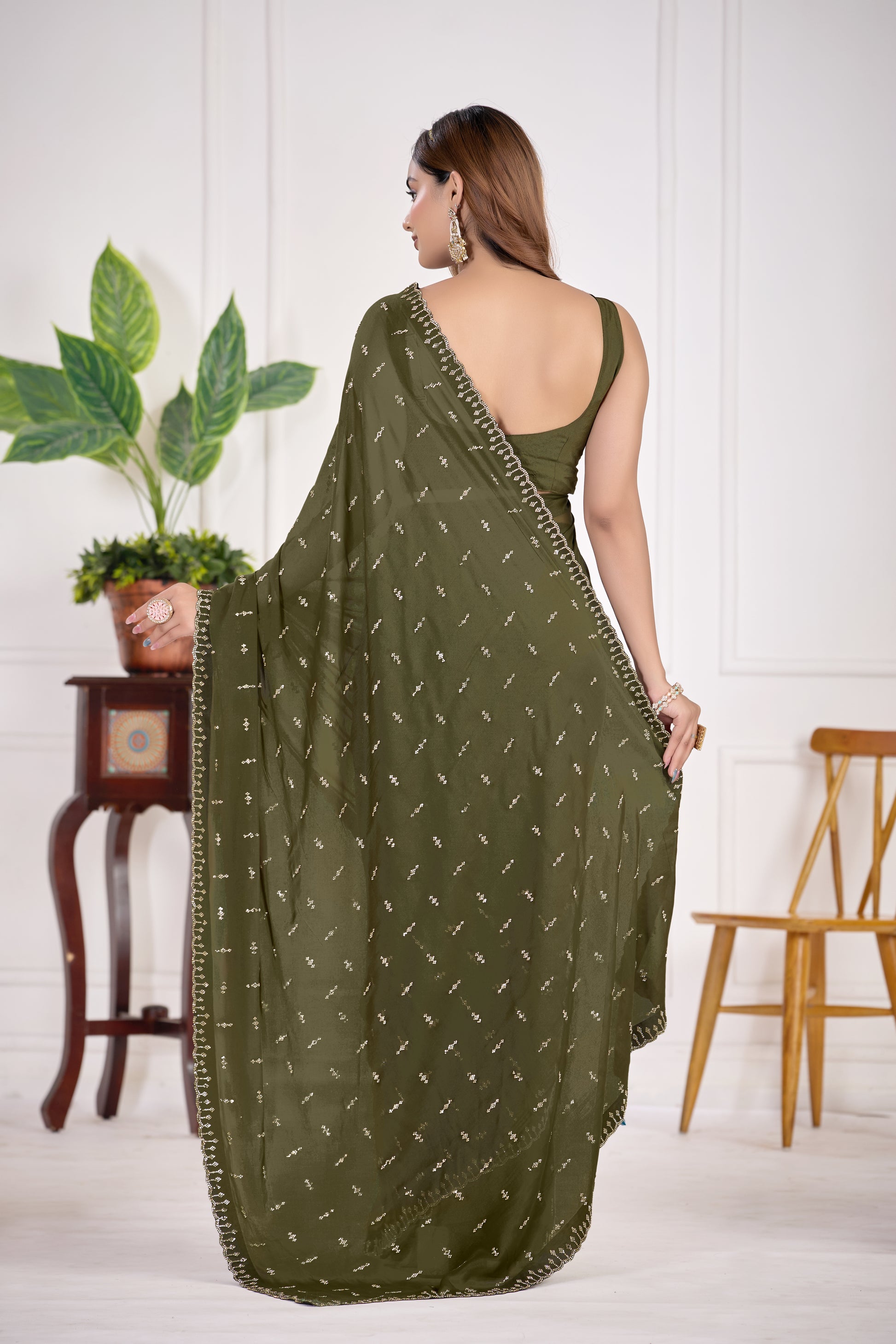 Mahendi Green Georgette Saree with Jarkan Work | Party & Festive Wear | TC Lifestyle