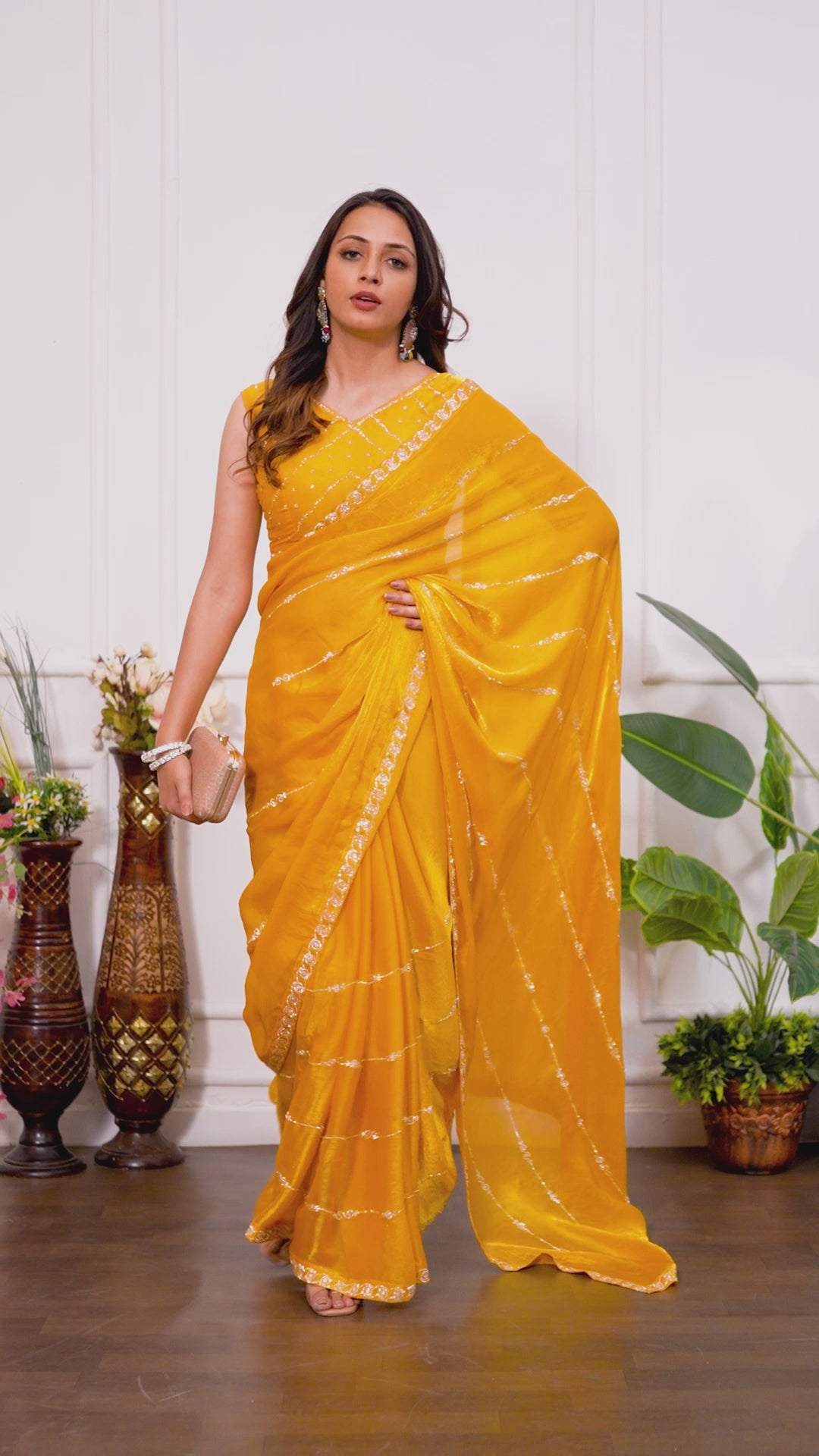 Premium Mustard Yellow Saree with Elegant Stone Work | Party & Festive Wear | TC Lifestyle