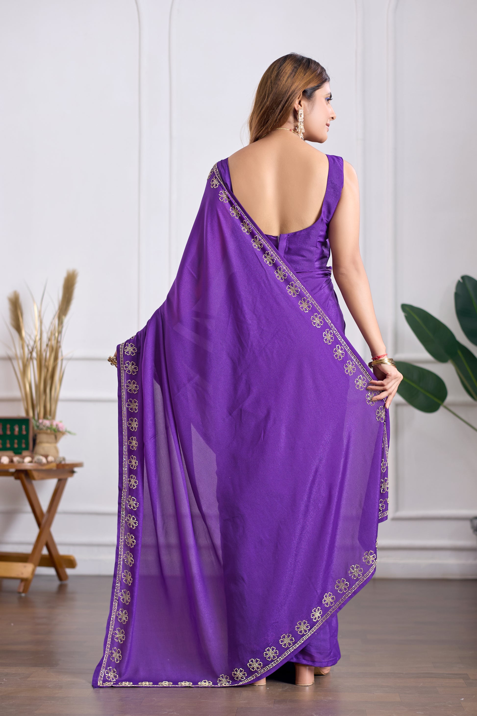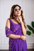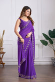 Purple Georgette Saree with Jarkan Work | Lightweight Party & Wedding Wear Saree
