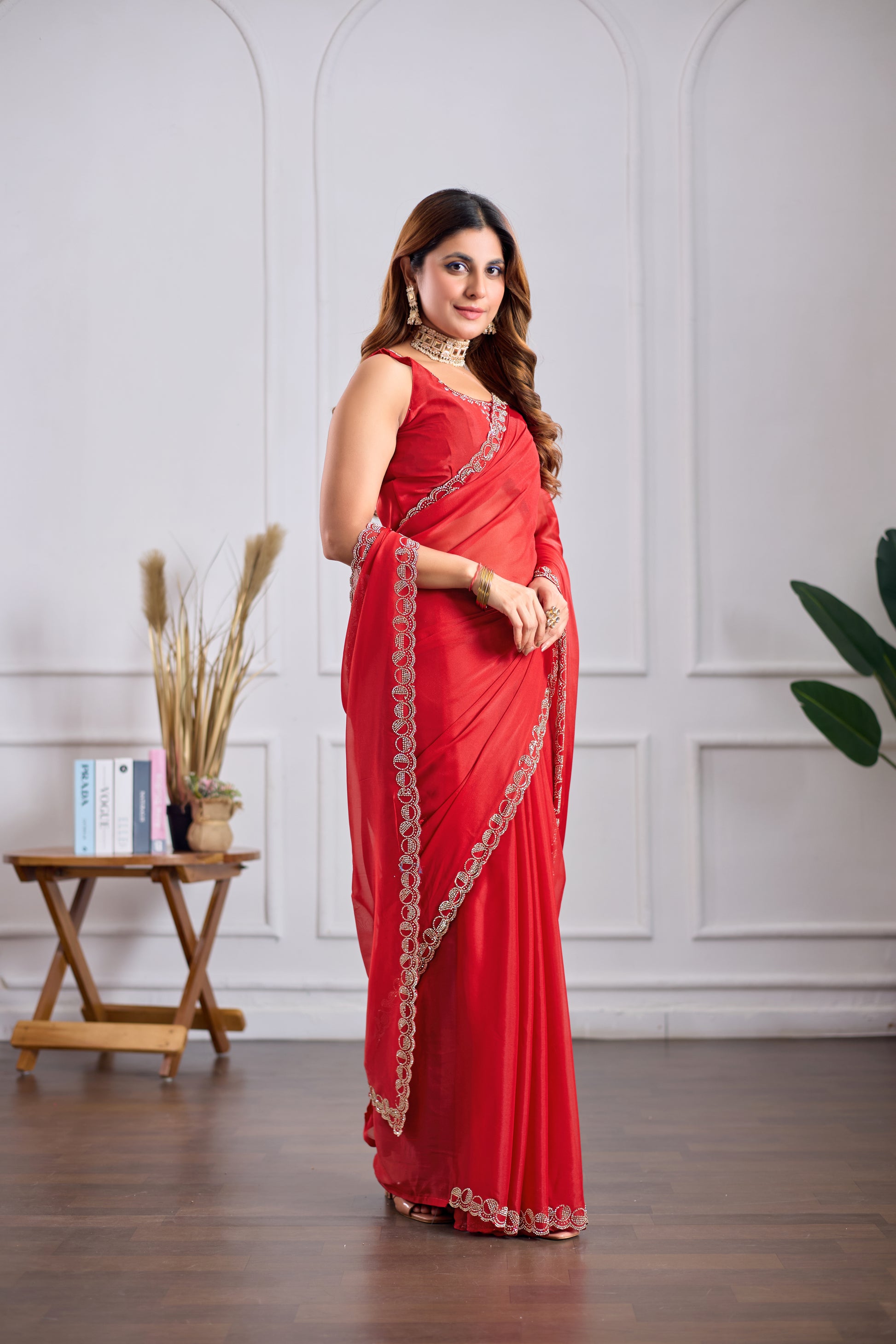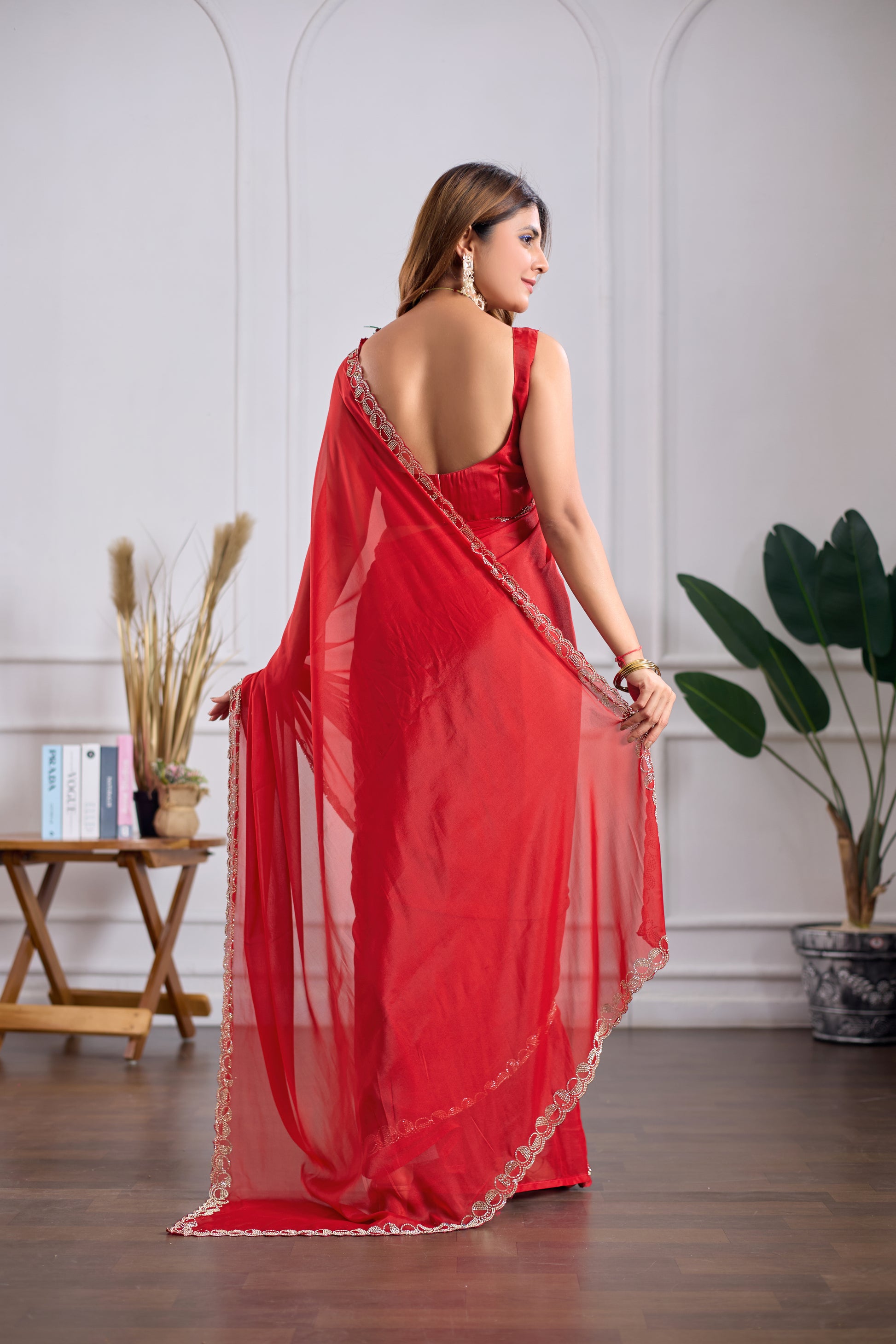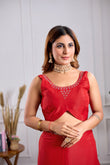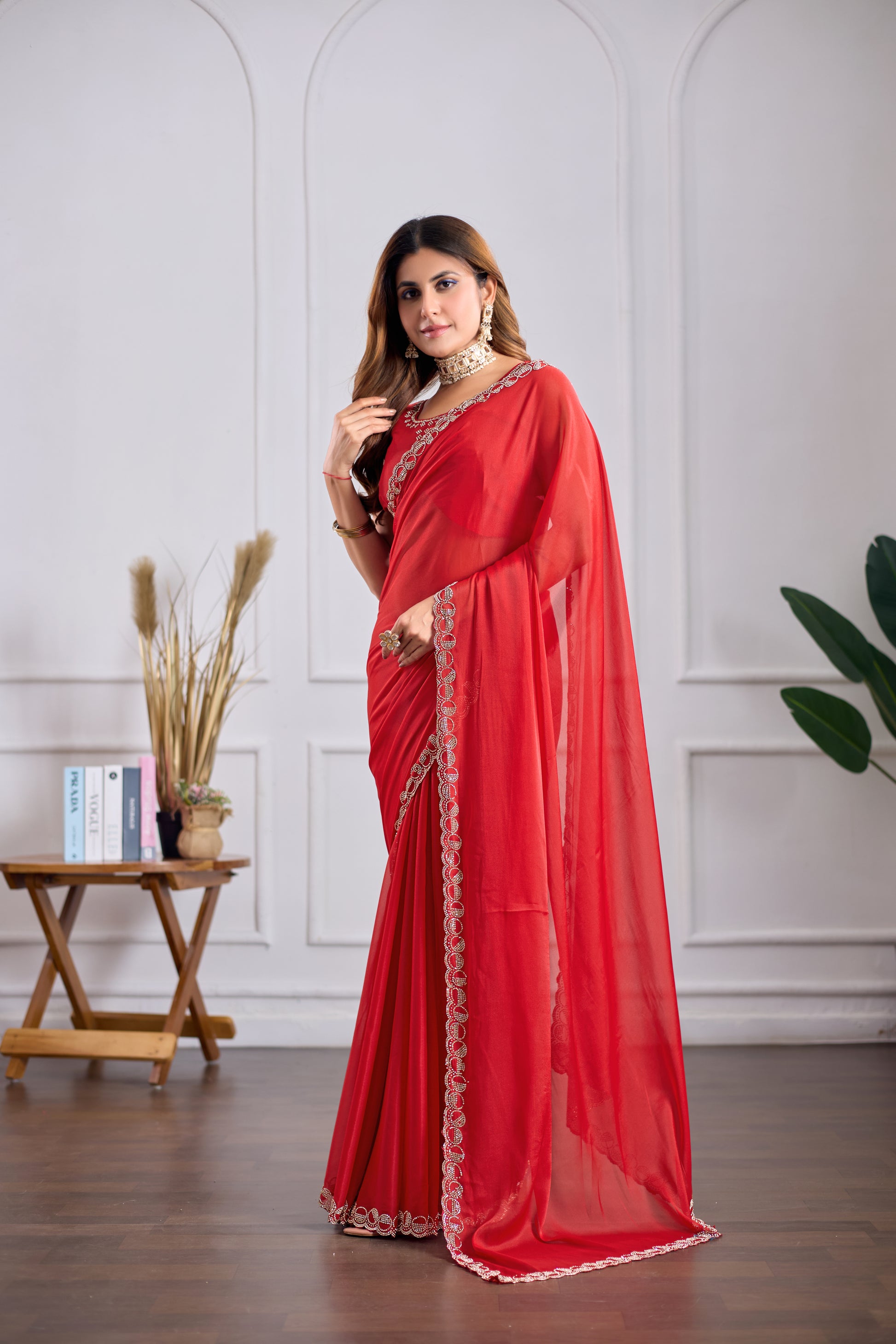 Red Georgette Saree with Jarkan Work | Lightweight Party & Wedding Wear Saree (Copy)