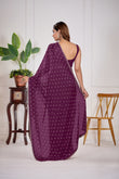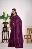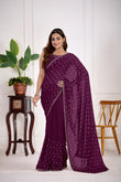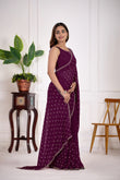 Satin Silk Wine Color All Over Jarkan butty Work Saree